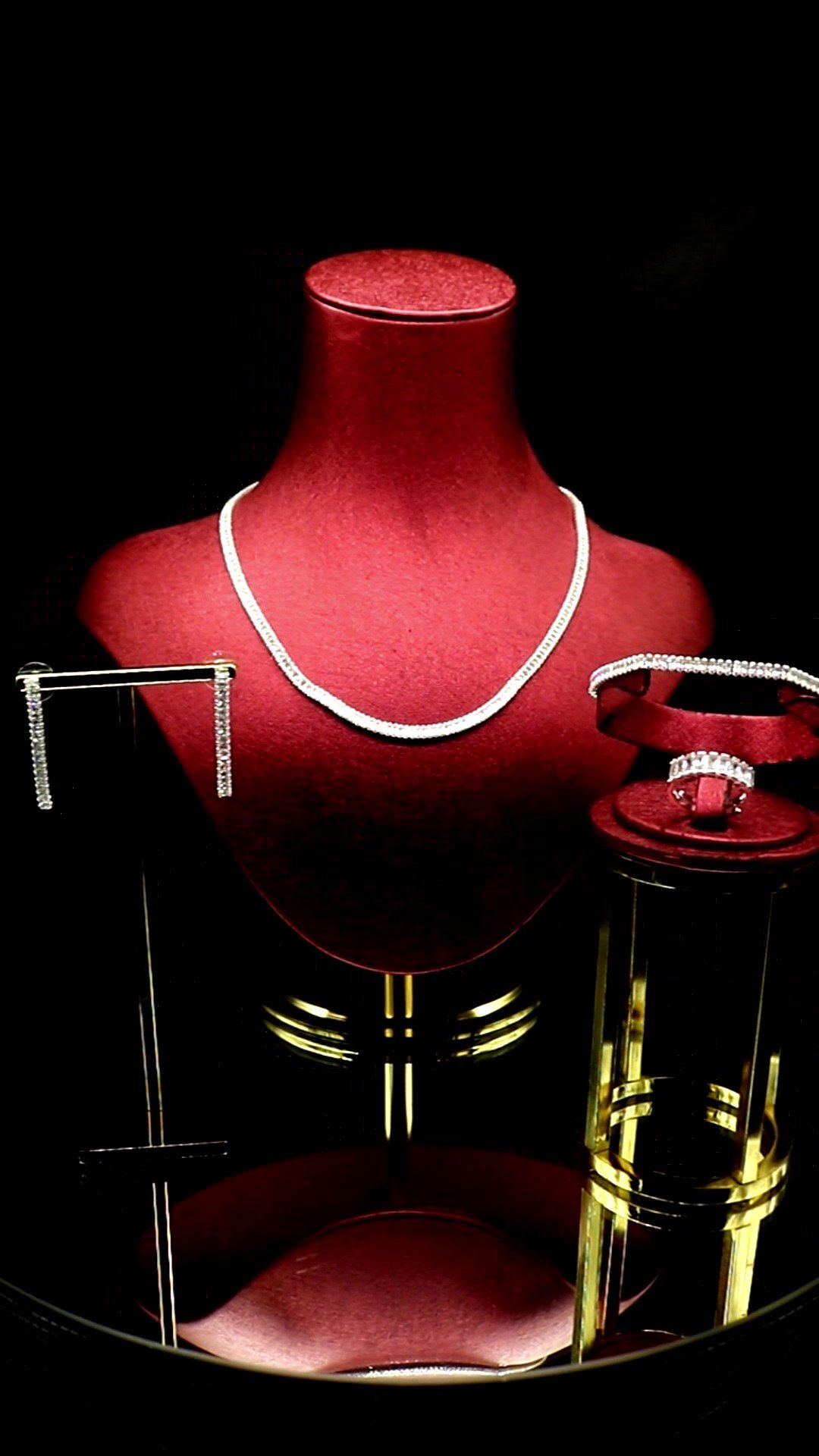 Zirkonyumdan yapılmış, yüksek stabiliteye sahip rodyum kaplamalı ve yüksek kaliteli Avusturya Swarovski taşlarıyla süslenmiş set.
